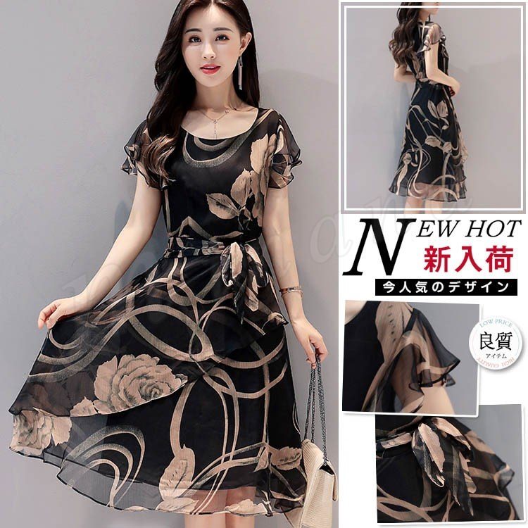 シフォンワンピース ロング丈 ワンピース 夏 半袖 マキシ丈 ワンピース レディース キレイめ