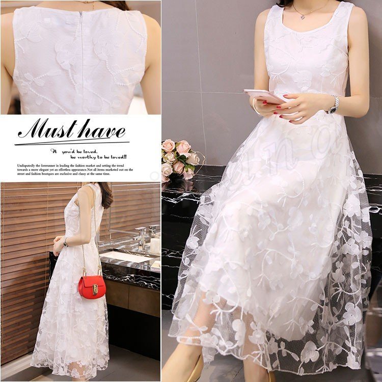 ワンピース 夏 レディース ワンピース着痩せ感UP 透かし彫り 白ワンピース マキシワンピ Aライン リゾート夏 ホワイト マキシ丈 シフォン