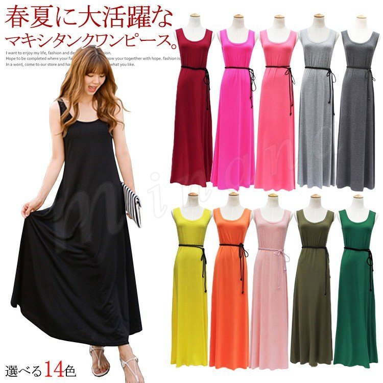 夏ワンピース マキシワンピース タンクワンピース マキシ丈 ナチュラル Aライン ワンピース ノースリーブ マキシ ワンピース フェミニン 春夏 レデ