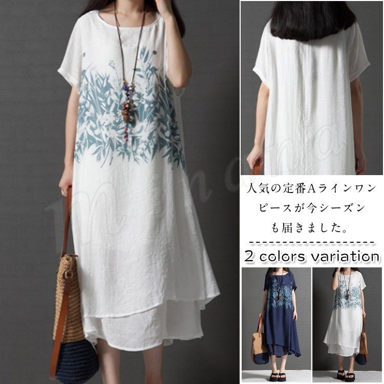 ワンピース 膝丈 レディース 大きいサイズ ワンピース 結婚式 リネン ワンピース リゾート 半袖 森ガール 2018春夏新作