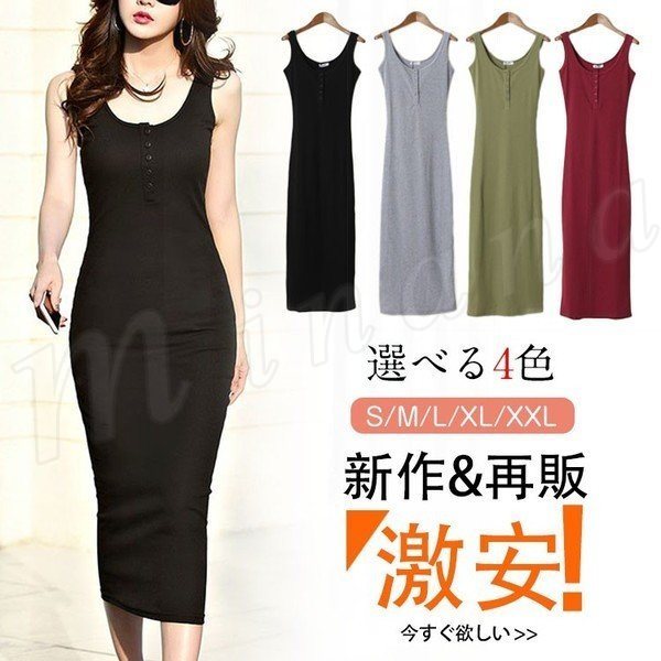 キャミソールワンピース ロングワンピース タイトワンピース タイト マキシ丈ワンピース スリム 胸もとボタン インナー タンクトップワンピー