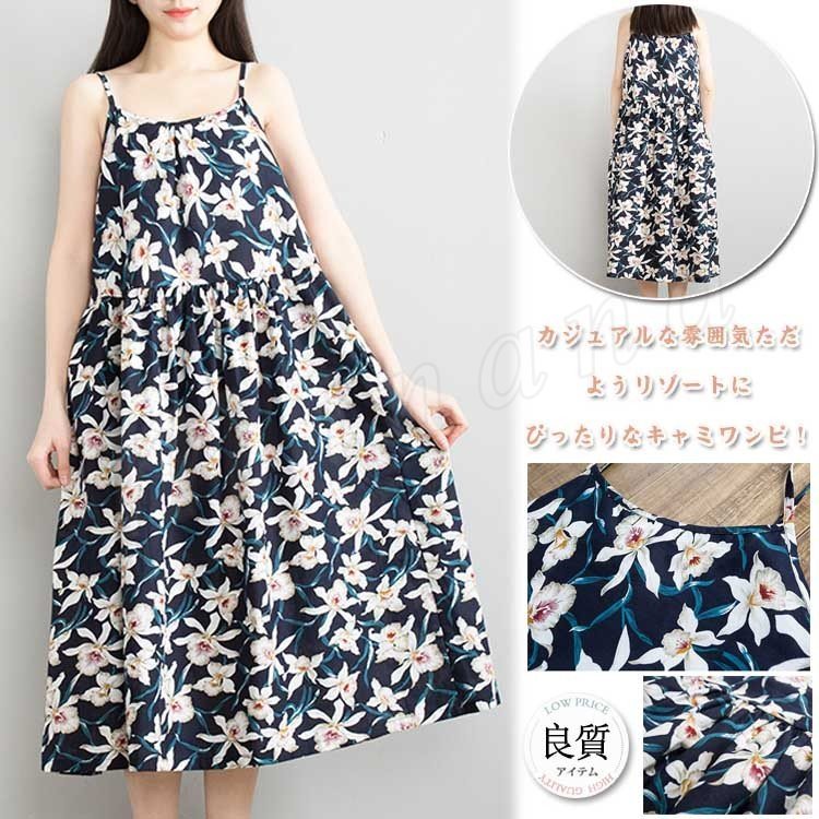 リゾート ワンピ キャミソールワンピ ボヘミアンワンピース ロング 花柄ワンピ フレアワンピース マキシ 夏新作