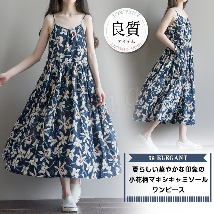 ワンピース夏ワンピ夏レデイースノースリーブシャツワンピ棉麻リネンマキシ丈大きいサイズ花柄森ガールキャミソールワンピース旅行