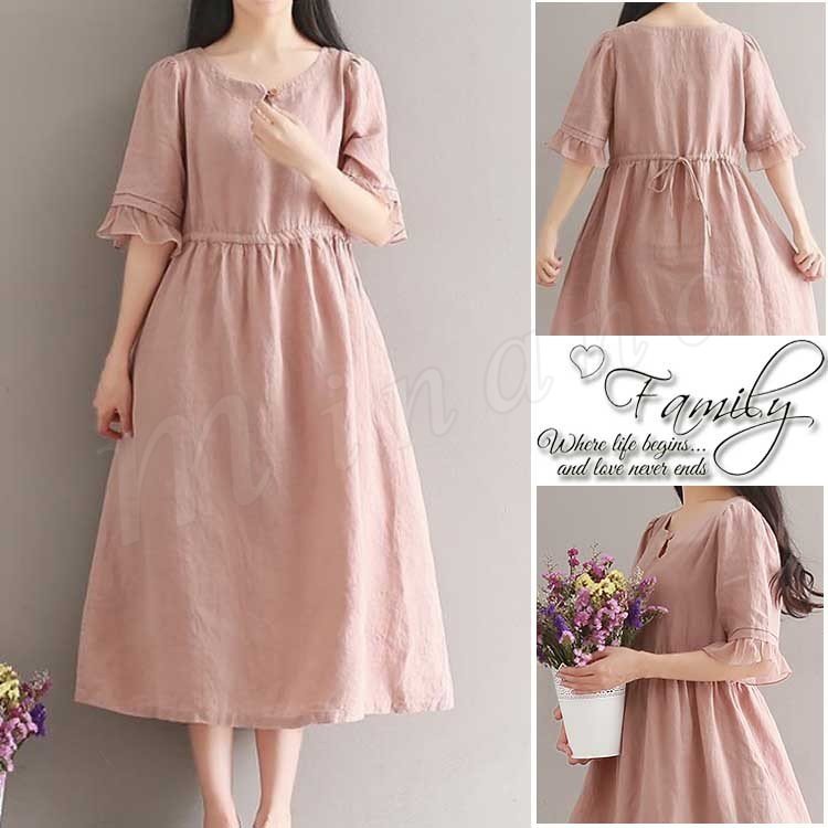 ワンピース ロング丈 レディース 大きいサイズ ワンピース 結婚式 リネン ワンピース リゾート 半袖 森ガール 2018春夏新作