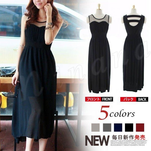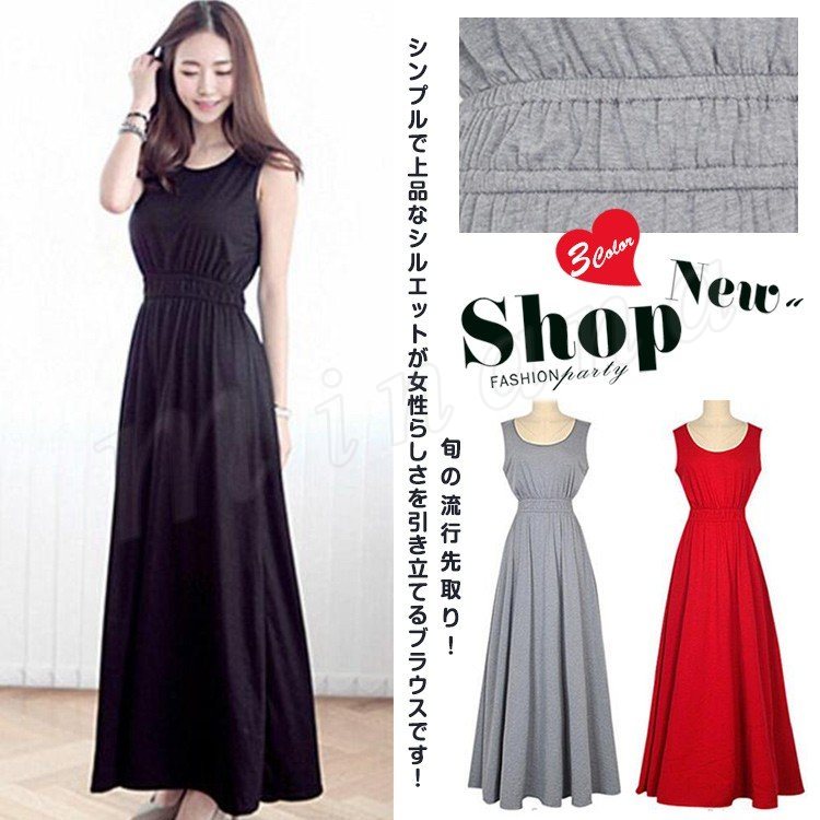 マキシワンピースロング丈モダールワンピワンピース無地エレンガントノースリーブロング丈ワンピースキレイめ2017春新作