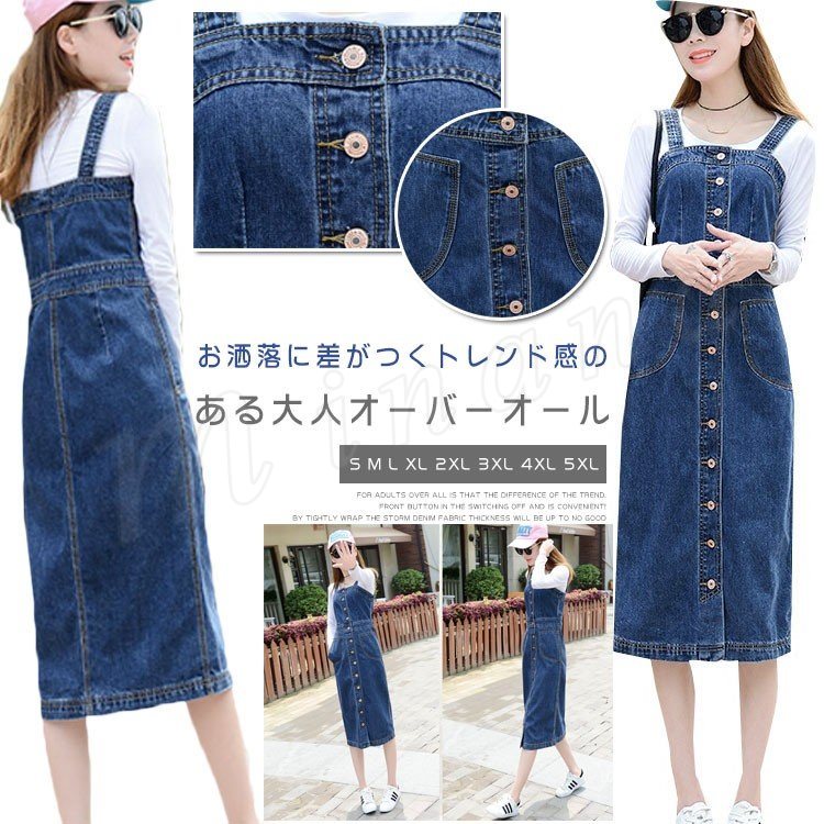 大きサイズ 5XLあり デニムワンピース オーバーオール ワンピース ジャンパースカート レディース オールインワン デニムスカート サロペッ