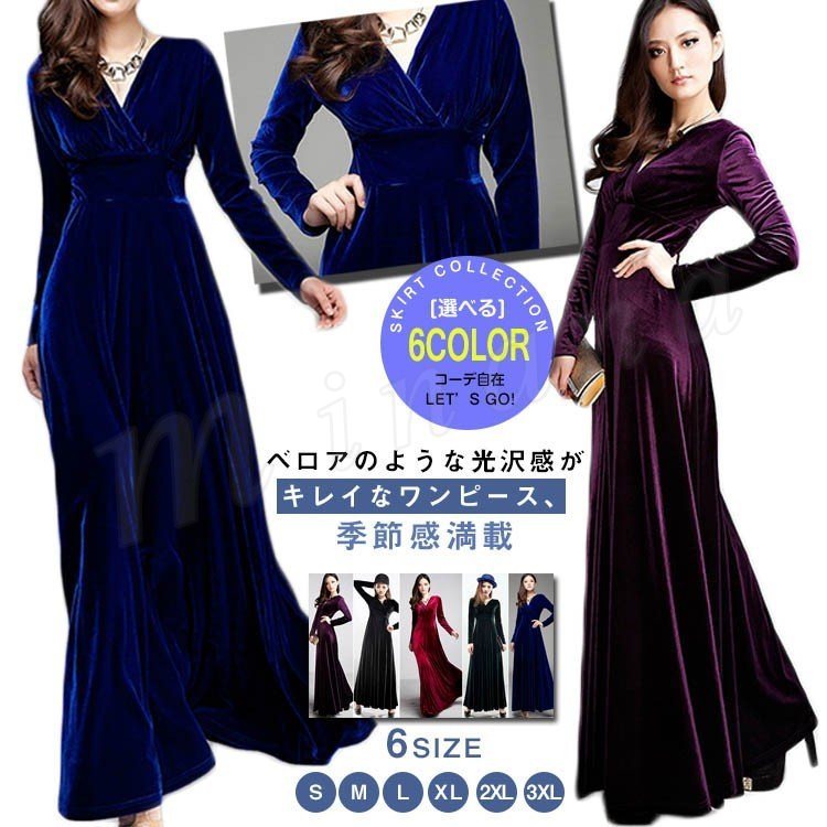 マキシ丈 ワンピース フォーマル パーティードレス Vネック ロングドレス 長袖 ロングワンピース ハイウェスト スリム Vネック