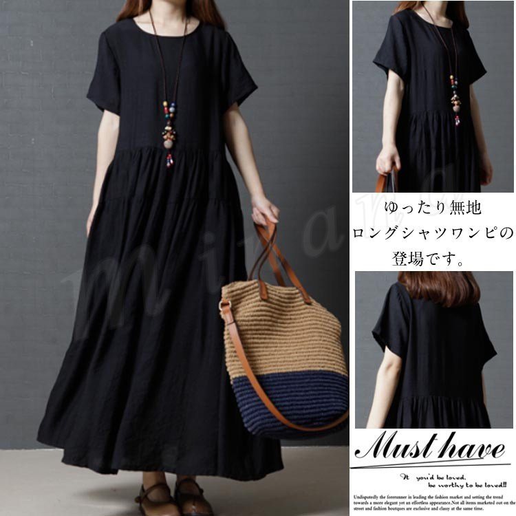 マキシワンピース ワンピ シャツワンピ レイヤー ロング 体型カバーカバー 無地 夏 秋 マキシ丈