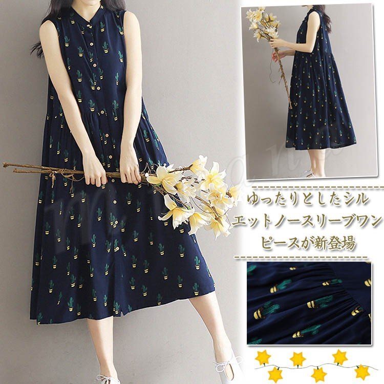 レディースワンピースノースリーブワンピースマキシ丈ワンピースロング丈ワンピースAラインワンピーススタンドカラー花柄ワンピース