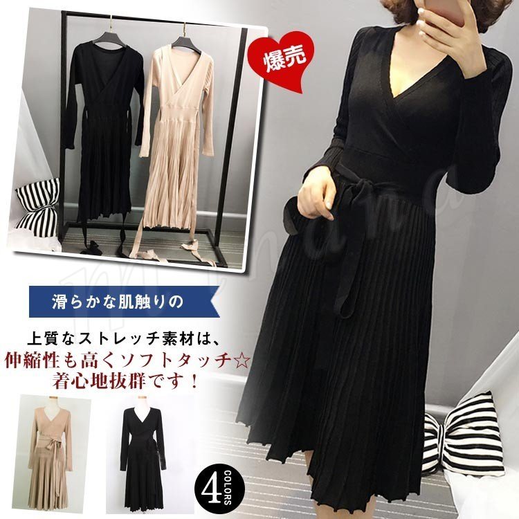 ウエストリボン・カシュクールワンピース カシュクール ジャージーワンピース ニットワンピース レディース ワンピース カシュクール プリーツ