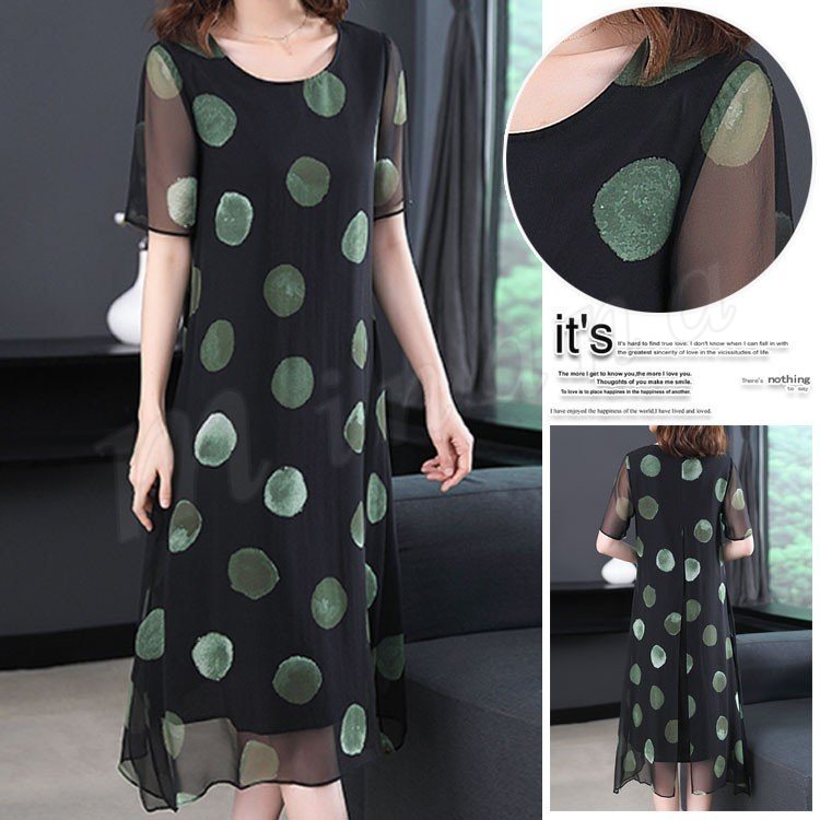 ワンピース レディース 膝丈 シフォンワンピース 半袖 大きいサイズ ドット柄フレアワンピース ゆったり 30代 40代 50代 2018春夏新作