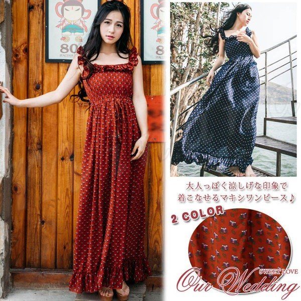 リゾートにも最適のマキシワンピ♪マキシワンピ 夏ワンピ 夏ワンピース 花柄 リゾートワンピース マキシワンピース マキシ ワンピ マキシ丈 v