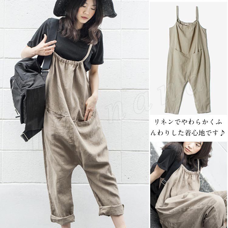 レディース ゆるサロペット サルエル オールインワン オーバーオール ポケット付き 着やせ 体型カバー カジュアル ゆったり