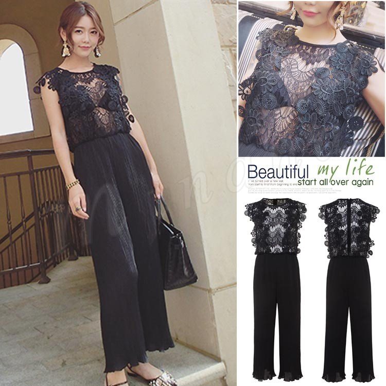 2018新作/オールインワン/レース/レディース/シースルー/プリーツ/パンツドレス/ガウチョ/ワイド/ファッション/きれいめ/おしゃれ/