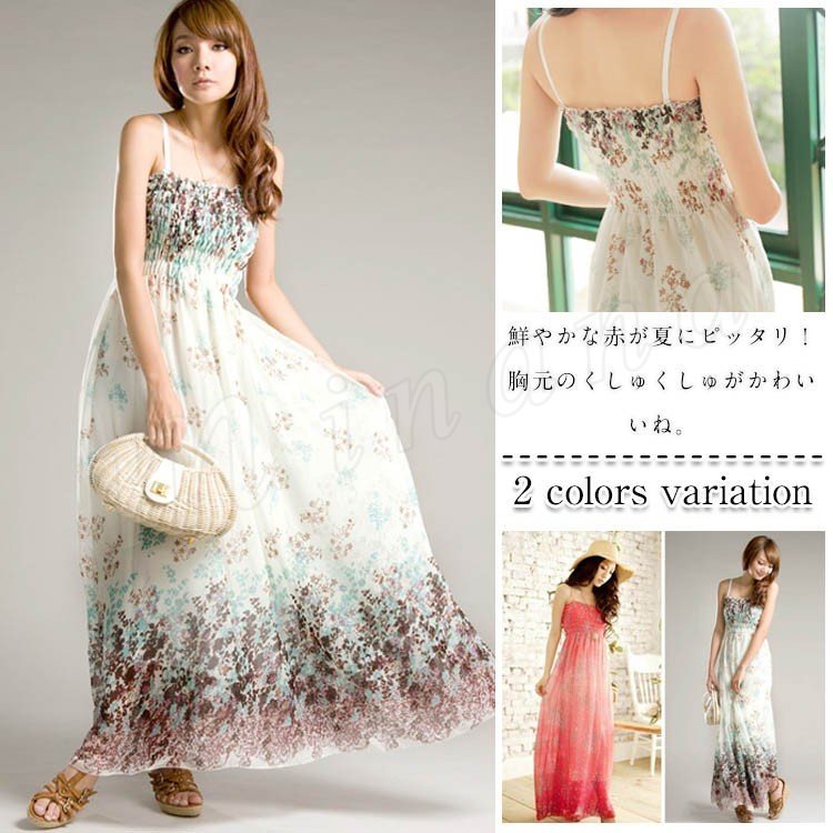 鮮やか花柄マキシ丈ワンピース/リゾート