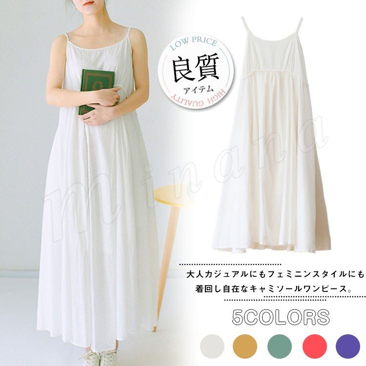 キャミソールワンピース レディース ワンピース ロング キャミワンピ マキシワンピ ノースリーブ 夏ワンピース 夏ワンピ 綿 コットン 薄手