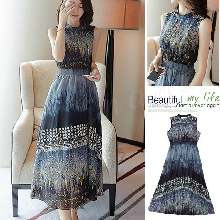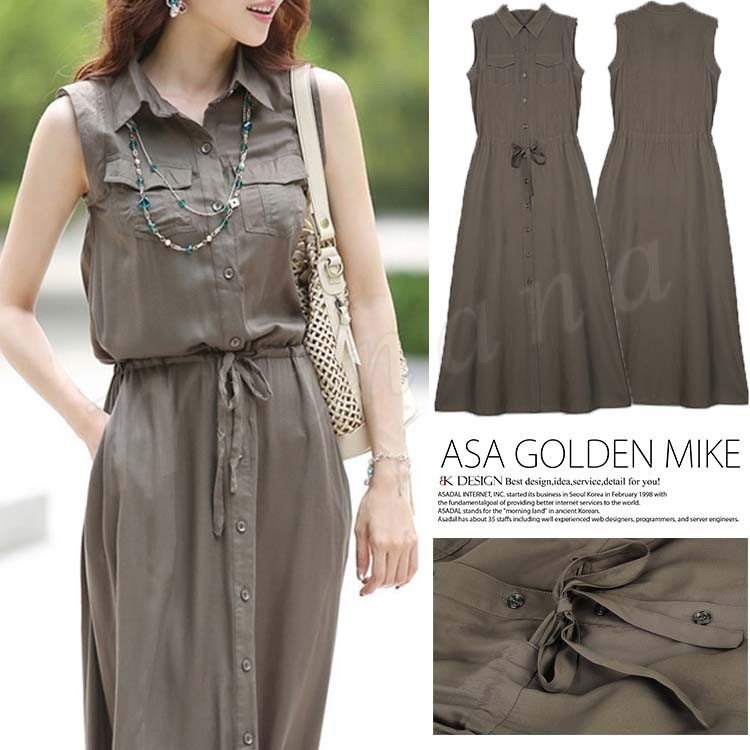 マキシワンピ 一枚で気楽 夏 ノースリーブ マキシワンピース
