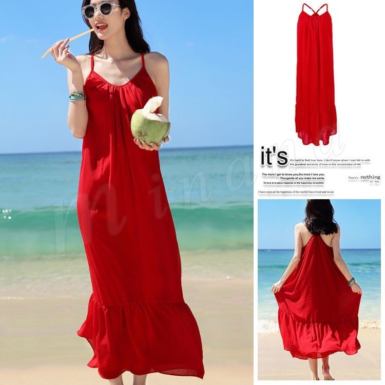 ワンピース レディース ワンピース 夏 ロングワンピ フレアスカート 海ワンピ シフォン キャミソールワンピース ボヘミア2色入り セクシー バックレ