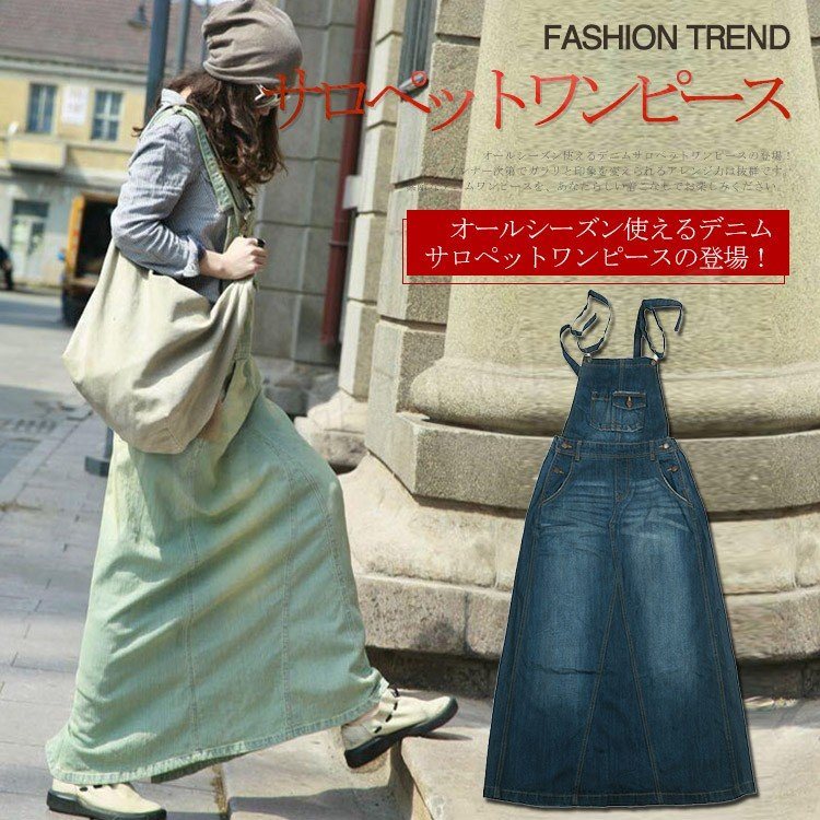 デニム サロペットワンピース サロペット オールインワン マキシ丈 デニム ワンピース デニムスカート ロング丈 サロペットスカート レディ