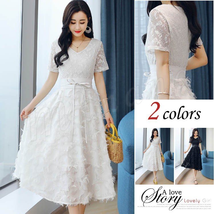 ワンピース 結婚式 レディース ワンピース 半袖 ロング丈 ワンピース レースワンピース フレアワンピース チュニック 2018春夏新作