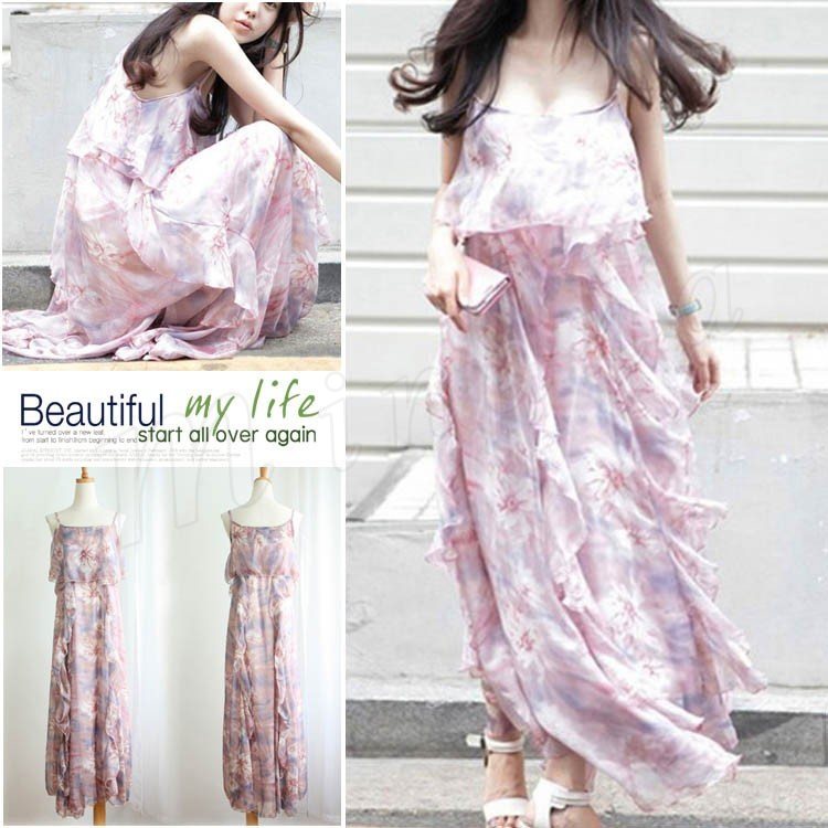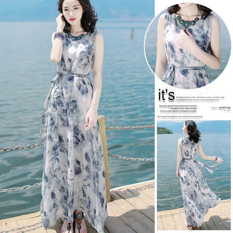 マキシワンピース 夏 レディース シフォンワンピース チュニック マキシワンピース 花柄 ノースリーブ ビーチワンピース 2018夏新作