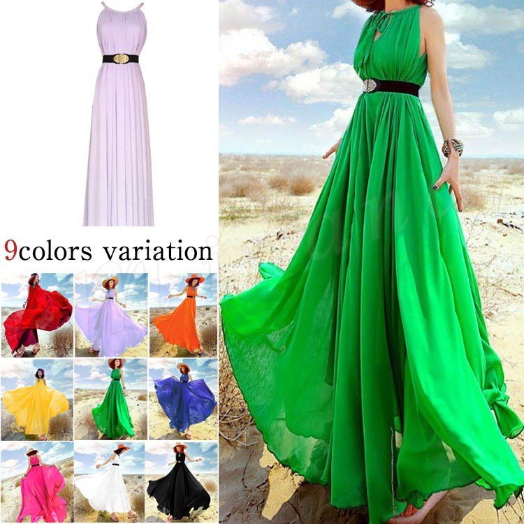 ワンピース レディース ワンピース 夏 ロングワンピ フレアスカート 海ワンピ シフォン リゾートワンピース ボヘミア 大きいサイズ 9色入り