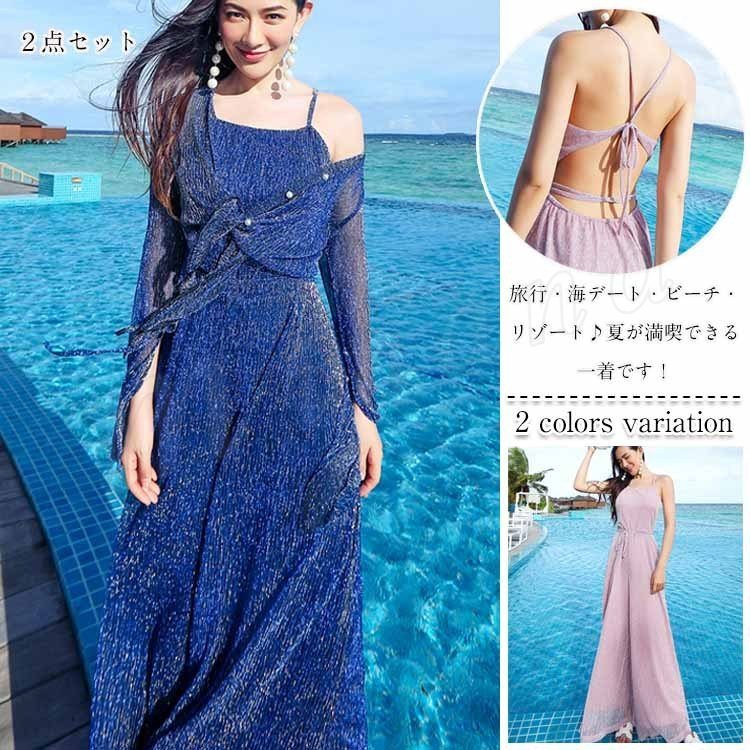リゾートドレス リゾート オールインワン リゾート ファッション リゾートドレス レディース きれいめ 2点セット ワイドパンツ レディース