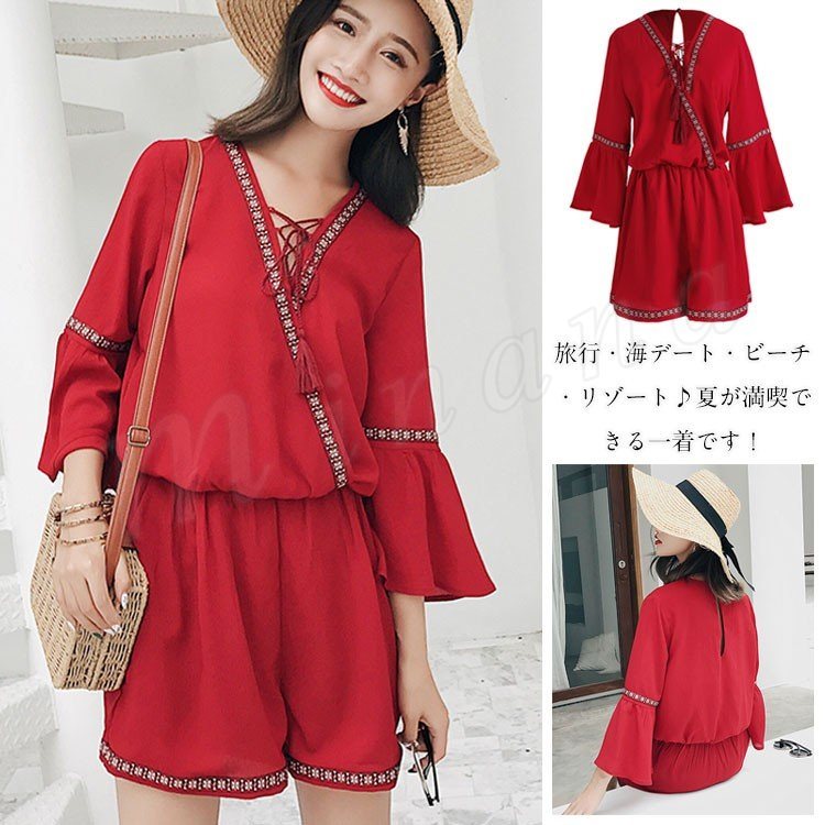 リゾート オールインワン リゾート ファッション レディース オールインワン レディース オールインワン 春 夏 ハイウエスト