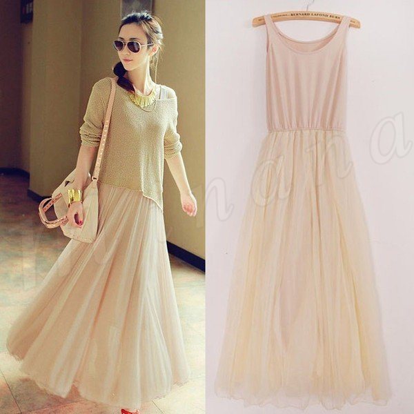 ニットトップス+マキシワンピ 2点セット シフォン ワンピ 着痩せ レディース マキシワンピ 無地 ふんわり
