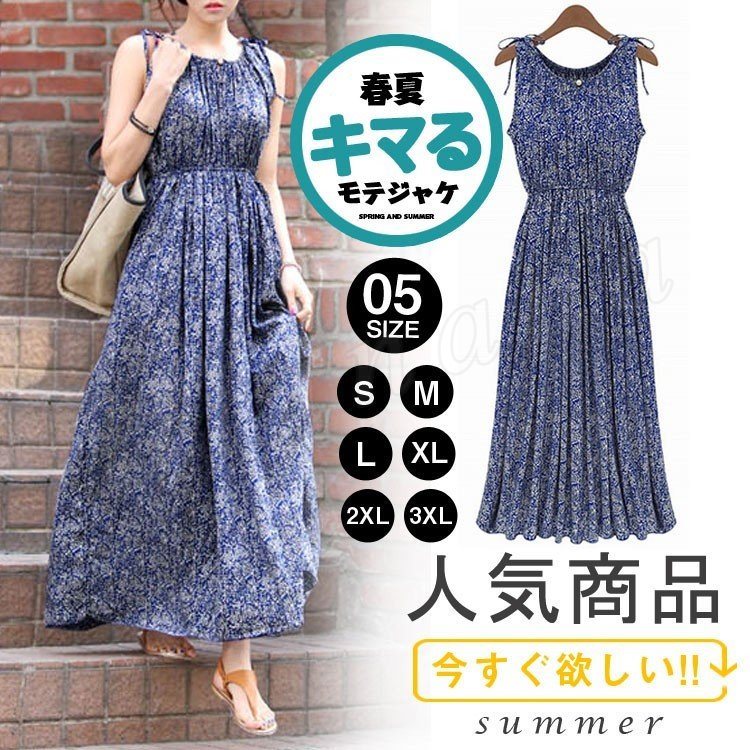 ワンピース ロングワンピース フレアワンピース マキシワンピース ノースリーブ レデイース マキシ丈 花柄 旅行 キャミソールワンピース 海