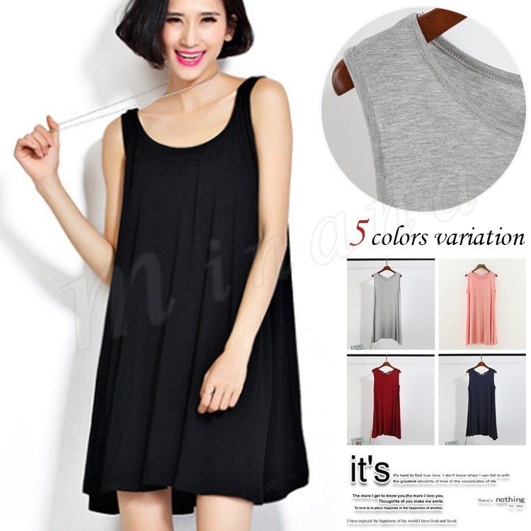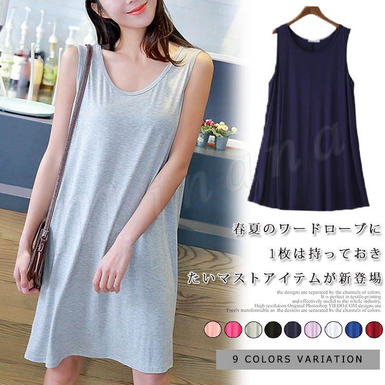 タンクワンピース ショート丈 ワンピース ノースリーブ ワンピース Aライン タンクトップワンピース クールネック Uネック タンクワンピ レイヤード
