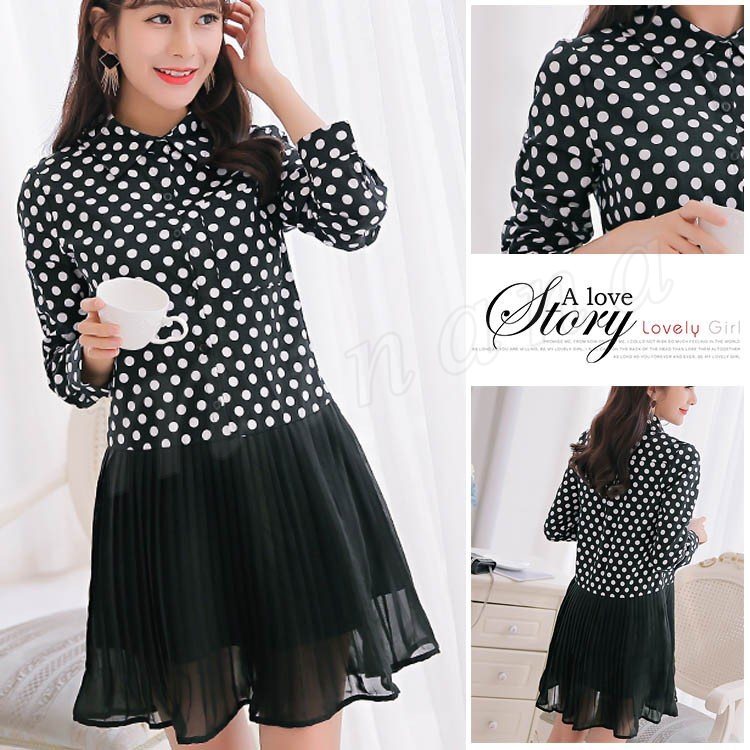 めちゃ可愛いドット柄ワンピース 秋冬 長袖 水玉柄 オールインワン レディース シンプル S~2XL大きいサイズ Aライン フレア ビジネス