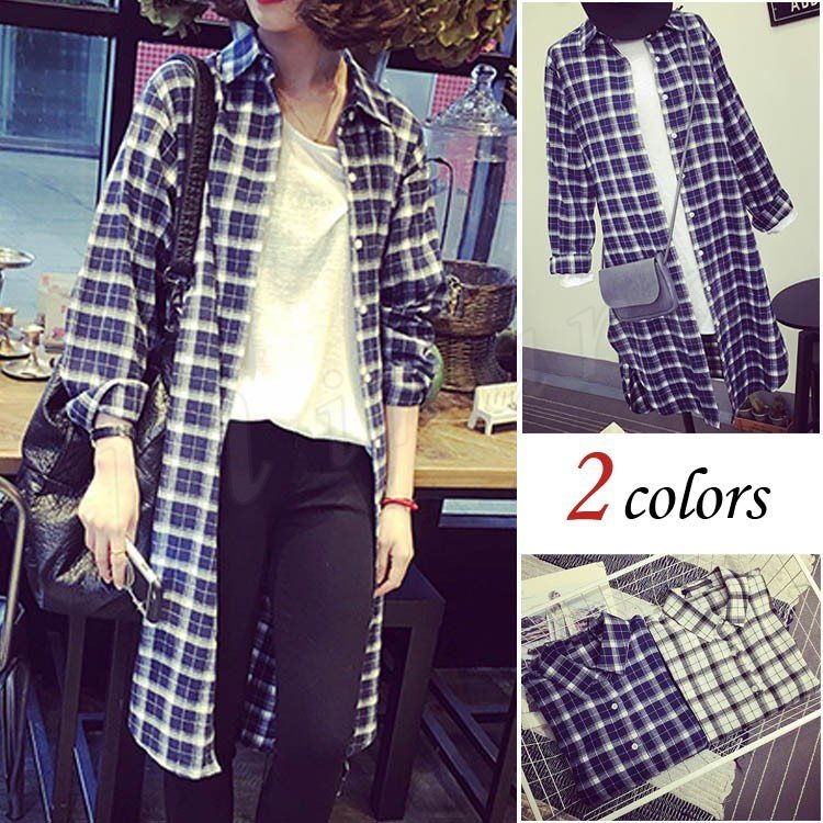 シャツ ロングシャツ シャツワンピース トップス レディース 膝丈 BF風 チュニック 前開き 体型カバー ゆったり 長袖 チェック柄 シン