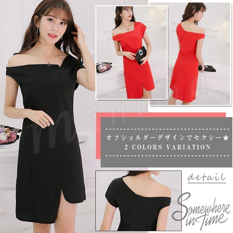 オフショルダーワンピース ワンピース レディース ショート丈 ミニ 無地 ワンピ 膝上丈 肩だし 肌見せ セクシー Aライン シンプル エレガ
