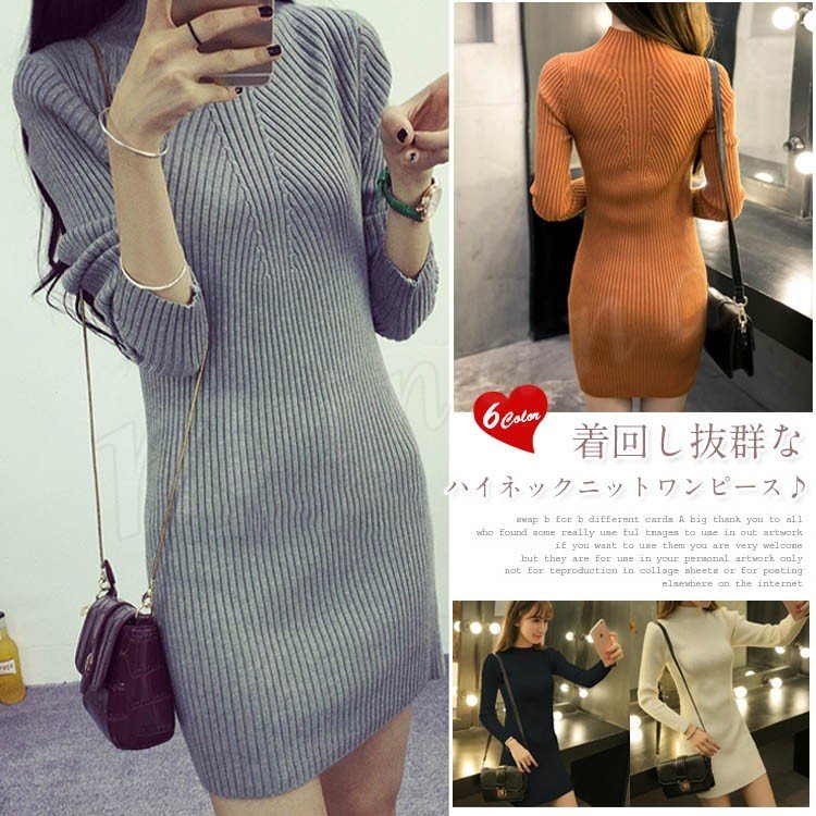 [6色展開]タートルネック ニットワンピース レディース ロング丈 ワンピ 長袖 ハイネックリブニット トップス リブ 秋冬 きれいめ オフィス 通勤