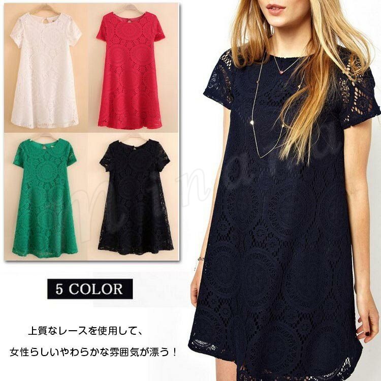 レースワンピース ショート 半袖ワンピ 透け感有り Aラインワンピース チュニックワンピース フレアワンピース 夏ワンピース オシャレ