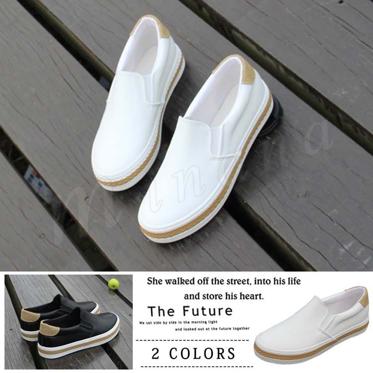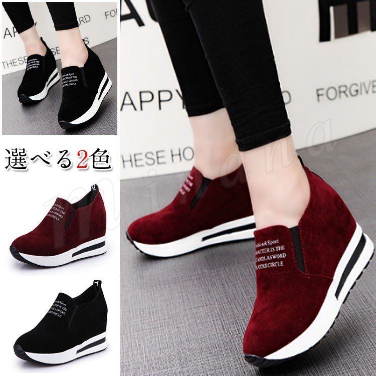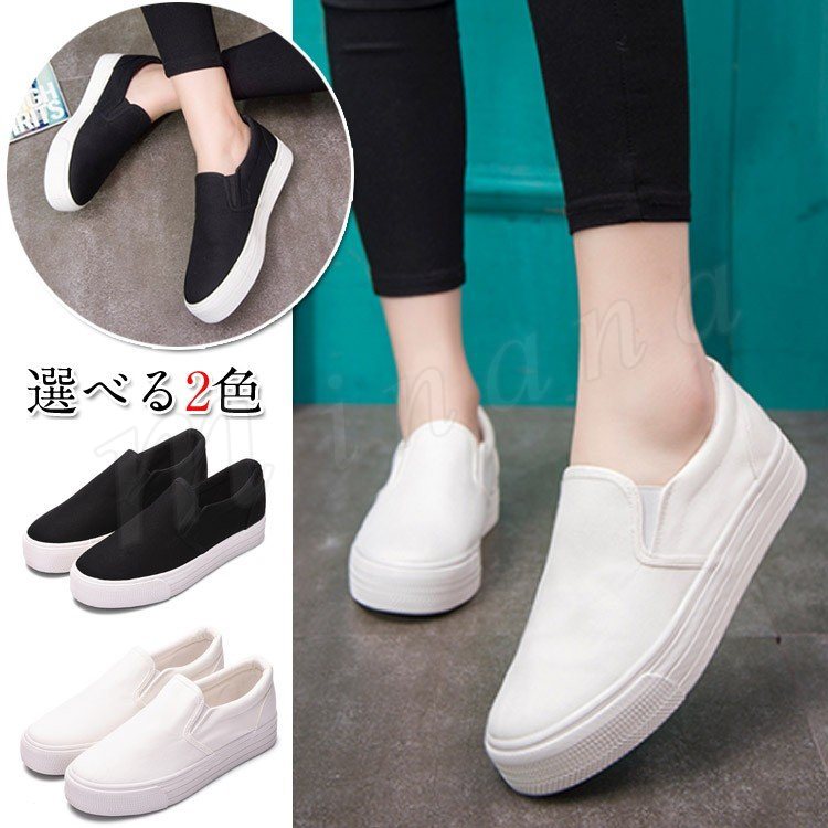 スリッポン レディース スニーカー キャンバス 厚底 無地