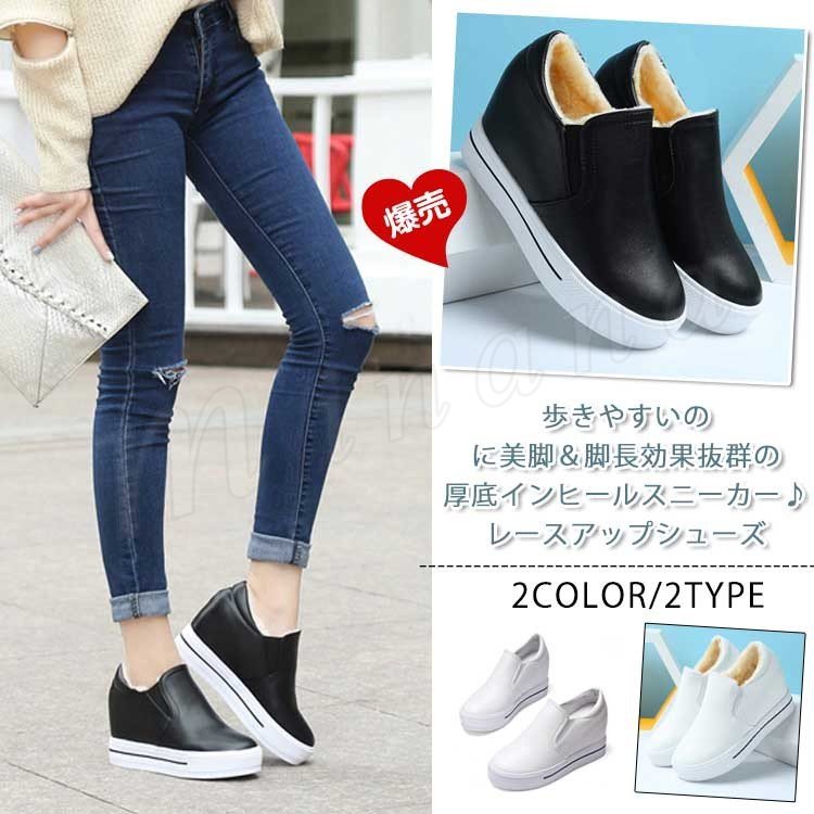 厚底スニーカー 黒/白シューズ、ハイヒール、靴、レディース、パンプス スニーカー レディース インヒール厚底スニーカー カジュアル 歩きやすい 疲れに