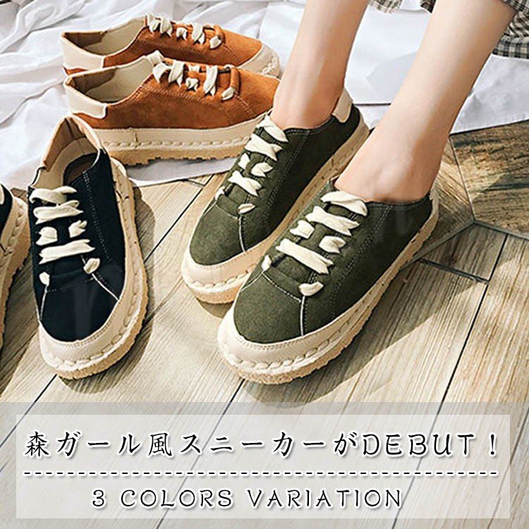 森ガール フラットシューズ ローヒール 靴 ぺたんこ シューズ ローカット スニーカー バイカラー レースアップ シューズ レデイース スニーカー