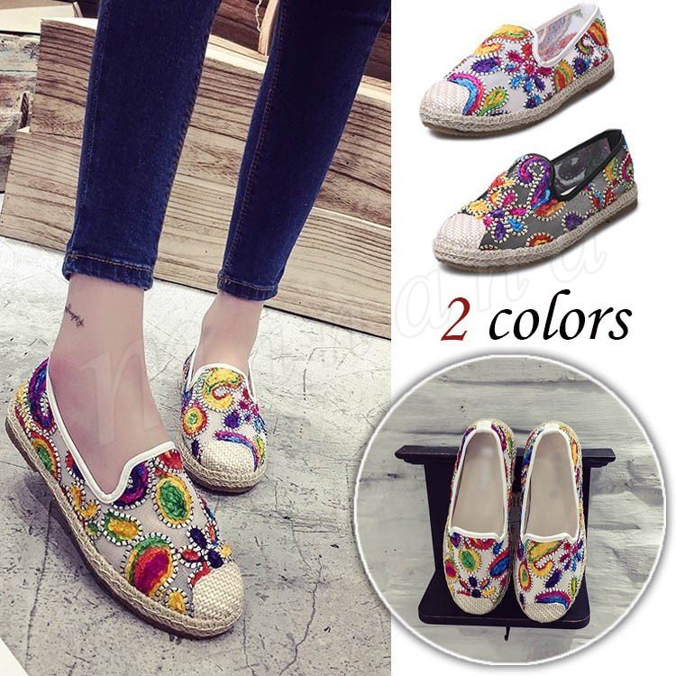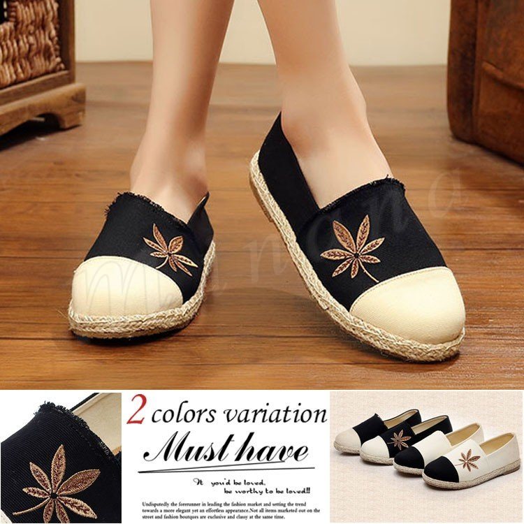 エスパドリーユ スリッポン レディース スニーカー 刺繍 フラットシューズ カラフル 刺繍スニーカー レディースシューズ