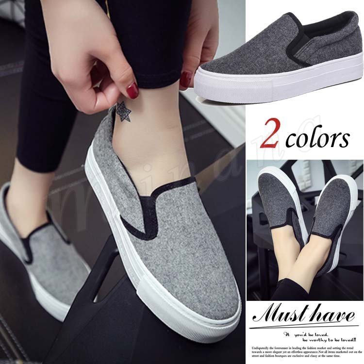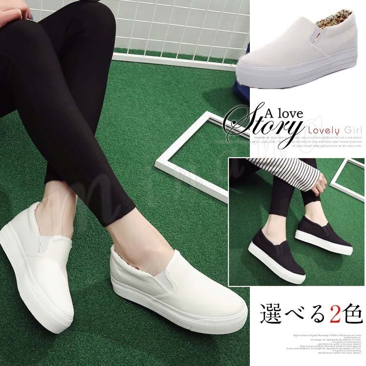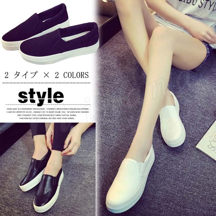 2018春秋新作 スリッポン スニーカー 厚底 キャンバスシューズ 靴 レディースファッション カジュアル 無地 シンプル 美脚 疲れない 痛くな