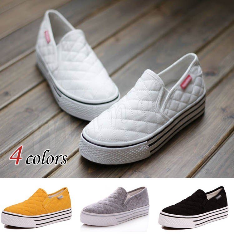 厚底スリッポン レディース スニーカーフラットシューズ キルティング キャンバススニーカー 靴