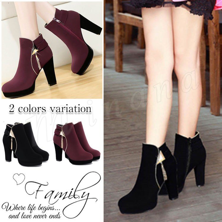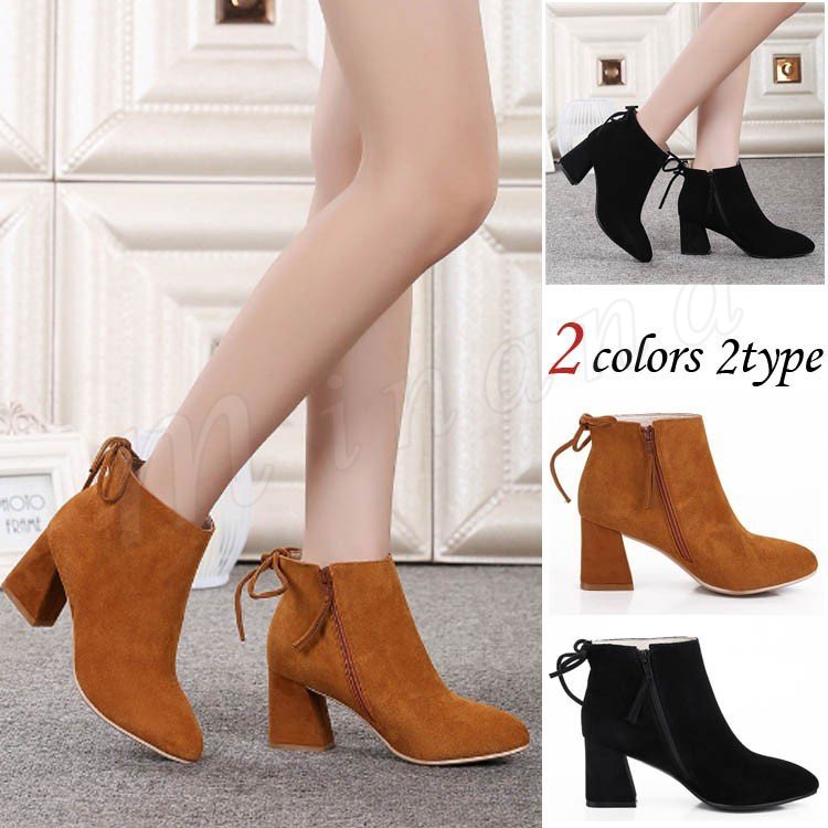 2018秋冬新作/ショートブーツ/レディース/ハイヒール/太ヒール/ファスナー/カジュアルシューズ/ファッション/靴/シンプル/美脚/春秋冬/おし
