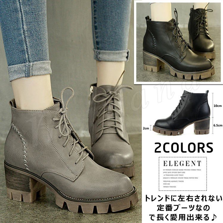 ブーティー レディース 厚底シューズ ショートブーツ 美脚ブーツ レースアップ 編み上げブーツ ワークブーツ 太めヒールブーティー