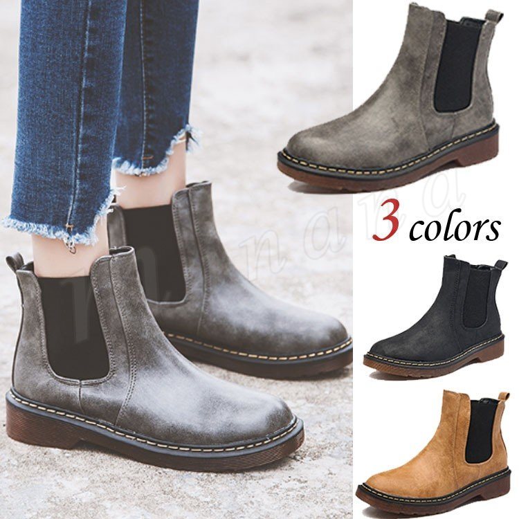 puレザーブーティ レディース ショートブーツ サイドゴアブーティー ローヒール ラウンドトゥブーティ 裏起毛ブーティー 太ヒール 美脚ブーツ