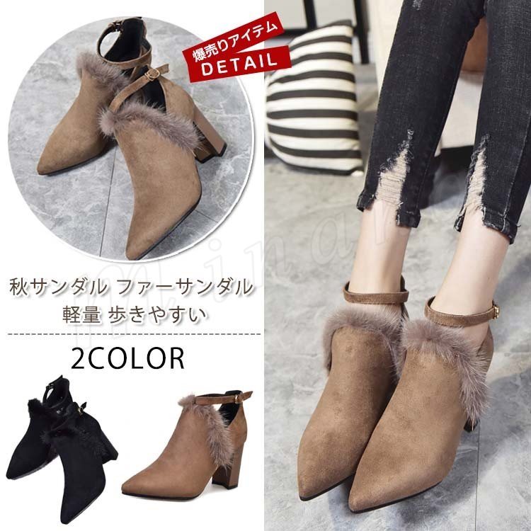 大人気のファーブーツ レディース ぺたんこ シンプル ファー付痛くない 歩きやすい フェイクファー ローヒール 走れるパンプス 軽量 レディース靴