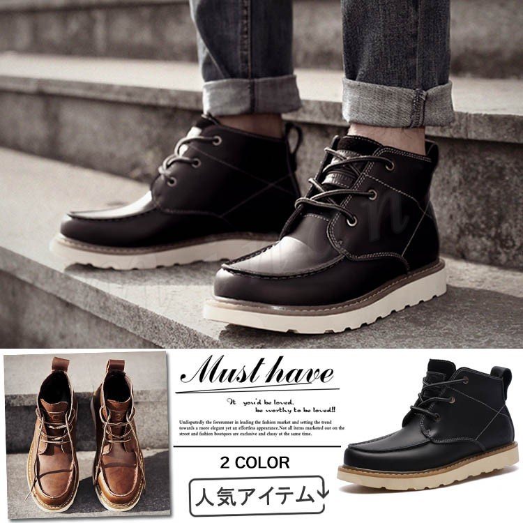 2018秋冬新作/ショートブーツ/メンズ/レースアップ/裏起毛/ワークブーツ/ビジネスシューズ/マーティンブーツ/裏ボア付き/靴/防寒/アウトドア