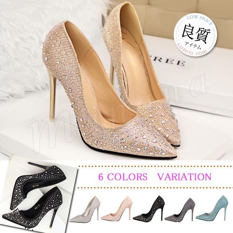 パンプス ピンヒール ヒール ポインテッドトゥ ラインストーン パーティ パーティー 結婚式 二次会 レディース 靴 シューズ