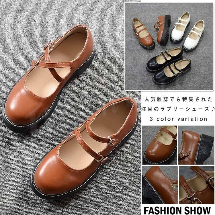 甲ベルト シューズ レザーシューズ お嬢様風 シューズ ロリータ ロリータシューズ ロリータ靴 メイド靴 フラットシューズ レースアップ レディース