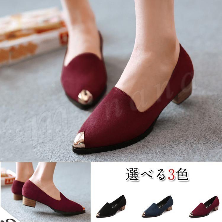 パンプス ローヒール ローファー ポインテッドトゥ 靴 レディース ファッション ビジネス/カジュアル 履きやすい 痛くない